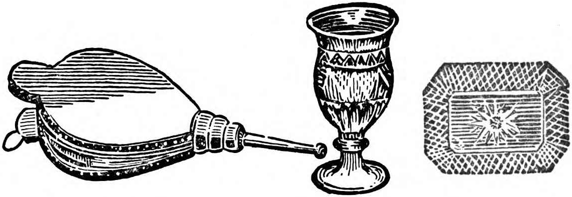 In making a careful examination of the well-sweep with their magnifying glasses, Dr. Rapp and Professor Heller reached markedly different conclusions as to its age. Dr. Rapp, as shown by the hasty notes which he jotted down at the time, was of the opinion that it dated back to 1683. Dr. Heller, on the other hand, basing his conclusions on the moss-layers at the end of the pole, was firmly convinced that it could not have been made prior to 1765. Each scientist labored for hours in the effort to win over the other to his views. The arguments finally became bitter, and eventually they attacked each other with their magnifying glasses, which were unusually large and heavy. The noise of the struggle was heard by several neighbors; but it was not investigated, as Professor Heller had long been accustomed to distil alcohol, sampling the results as he went along, and frequently becoming rather noisy. The neighbors, unfortunately, thought he was sampling a new batch. On the following morning, when an attendant came to clean the Professor’s apartments, both Dr. Rapp[xii] and Professor Heller were dead. This is a beautiful example of the devotion to a cause which characterizes the work of all the members of the American Academy for the Popularization of Antiquities.
