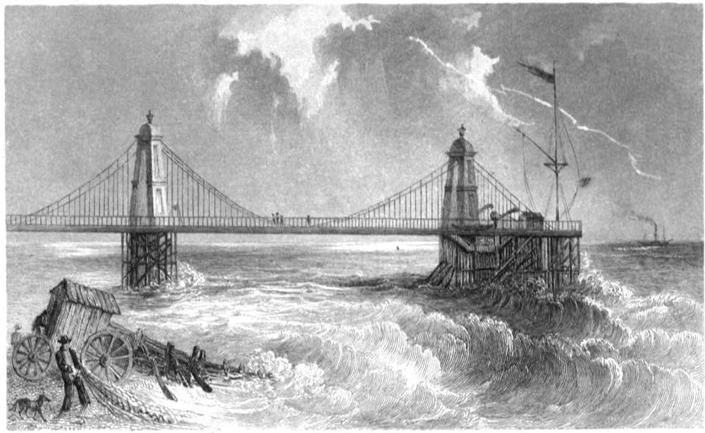 Mr. Ashton told them that the Chain-pier (for such the building was called) was used in the manner Edward had supposed; but that it was erected principally for the convenience of the visitors and inhabitants of Brighton, and that it forms one of the most agreeable walks in the town; “for, here” said he, as they passed the noble esplanade which forms the entrance to the pier, “we can enjoy the pure sea-breezes, without the[Pg 6] danger or difficulty of going out in an open boat.”