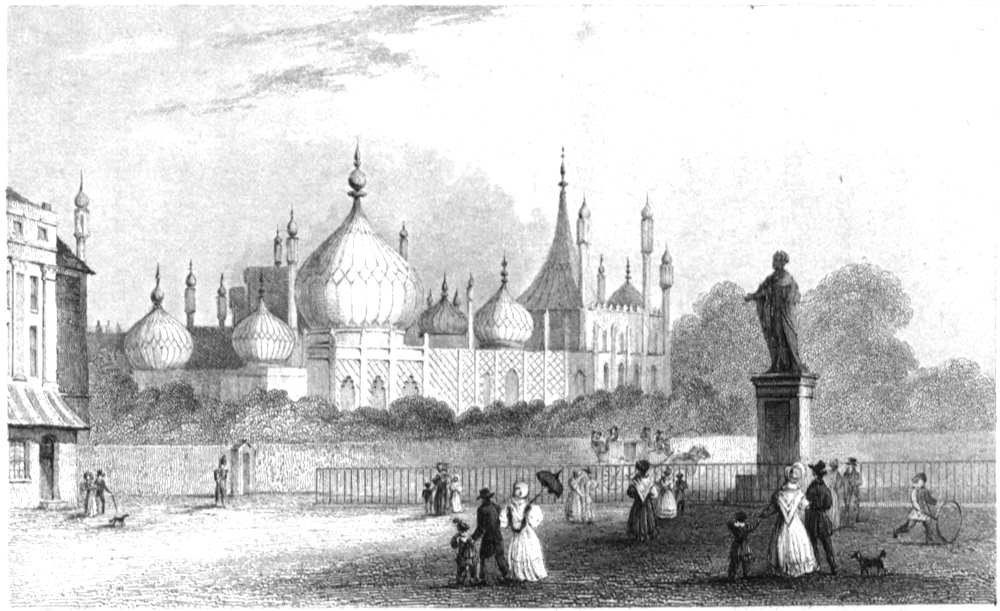 Mr. Ashton told his little boys, he should soon be ready to accompany[Pg 4] them; and Edward and Lewis amused themselves, till he made his appearance, in looking again at the new scene before them, from the windows of their sitting-room. Lewis soon espied a strange-looking building, different from any that he ever remembered to have seen before. Edward could only guess that it must be the Pavilion which they saw, with its domes and minarets. But now papa’s voice was heard from the hall, and the boys lost no time in obeying the summons.