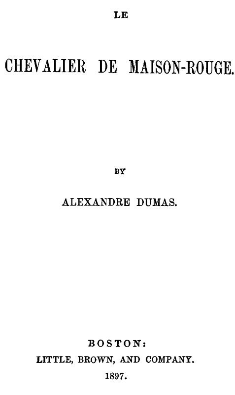 The "Chevalier de Maison-Rouge," though it deals with events subsequent to those covered by the earlier stories of the Marie Antoinette cycle, was written at an earlier date. In it we are introduced to a new set of personages, and see no more of the characters whose fortunes furnish the fictitious as distinguished from the historical interest of the earlier stories.