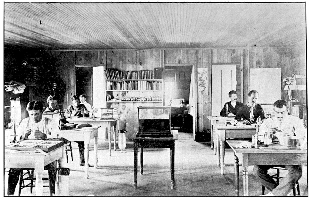 82While under the management of the Ohio State University, it is desired to make the laboratory as useful as possible to instructors and investigators in biology, wherever located. To this end table room is granted free of charge to qualified investigators, and any one wishing to undertake investigation of biological problems will be given all possible opportunity. Courses of study have been designed especially for high school teachers and for advanced university students, the former devoting themselves to methods of field work and preservation of material for laboratory use, and acquiring methods of laboratory work in connection with study of typical forms. For the latter, advanced courses in embryology, morphology, entomology, plant ecology, botany, etc., are offered. The students taking such courses can secure for them university credits covering equivalent courses in the university curriculum. It is needless to say that the opportunities for field observation, collecting, and the laboratory study of representative forms are most favorable. For special advanced courses in embryology, and particularly those pertaining to microscopical technique, the more elaborate equipment of the university is of course preferable.
