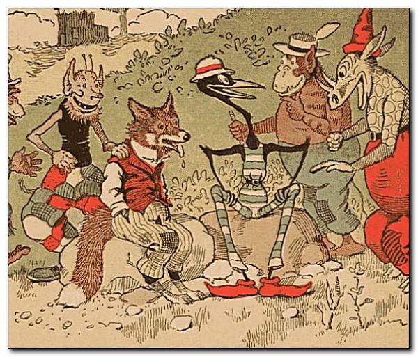 Once upon a time, not so very many years ago, there happened to meet, in the woods, the Pipsisewah, the Skeezicks, the Skuddlemagoon, the Boozap, the Blue Nosed Babboon and the Fuzzy Fox. “I don’t know how you feel about it, friends,” gargled the Pip, “but I am hungry for some of Uncle Wiggily’s souse!” They all said they were. “Then,” went on the Pip, “let’s go, one after another, to his hollow stump bungalow and try to get some. He may fool one of us but he can not fool us all! We’ll take turns trying to catch him.”
