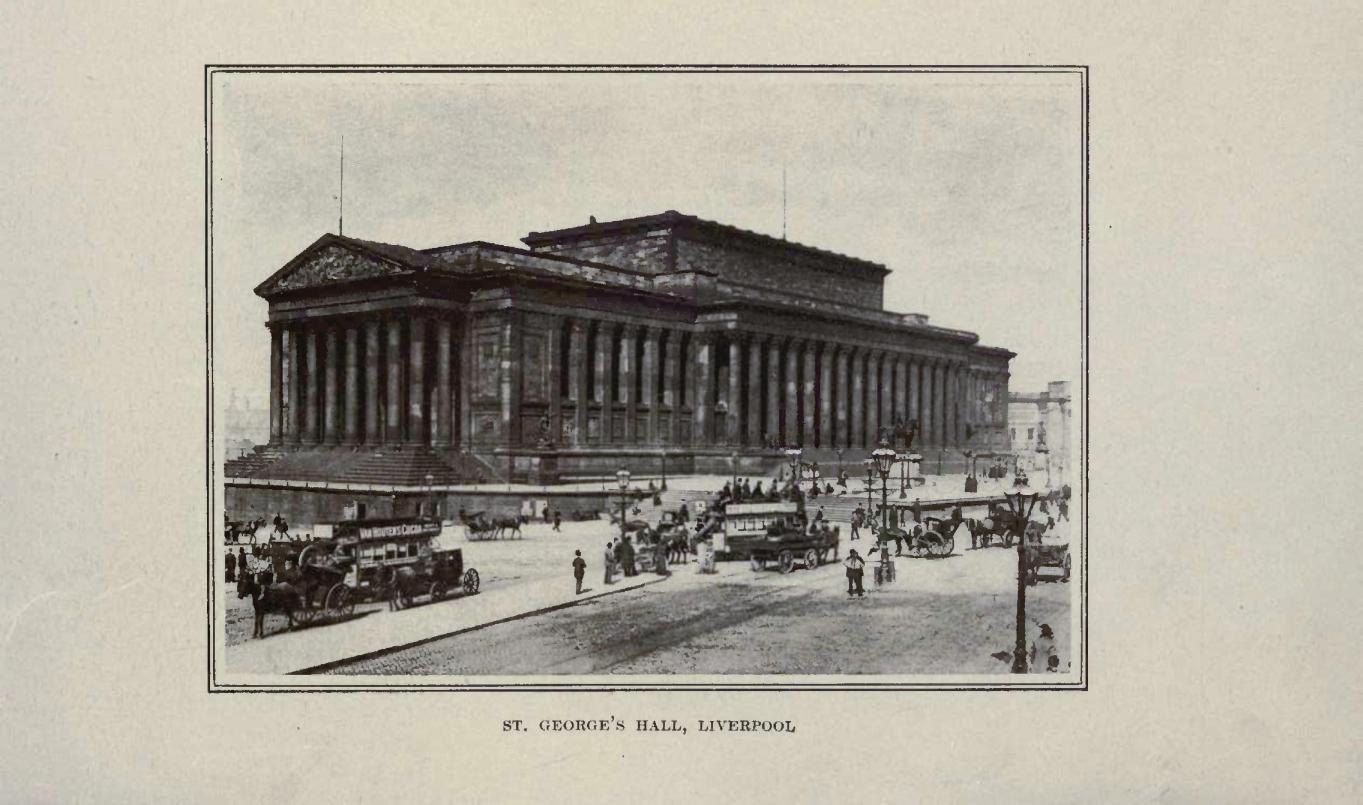Why should the proud stomach of American travel, much tossed in the transatlantic voyage, so instantly have itself carried from Liverpool to any point where trains will convey it? Liverpool is most worthy to be seen and known, and no one who looks up from the bacon and eggs of his first hotel breakfast after landing, and finds himself confronted by the coal-smoked Greek architecture of St. George’s Hall, can deny that it is of a singularly noble presence. The city has moments of failing in the promise of this classic edifice, but every now and then it reverts to it, and reminds the traveller that he is in a great modern metropolis of commerce by many other noble edifices.