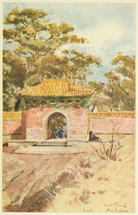 Our first expedition at Moukden was naturally to the Foo Ling tombs to see where the great founder of the Manchu dynasty lies buried. It is disappointing to be unable to gain information as to the date of the tomb, but no doubt the Manchus adopted the architecture and arts of China at an early stage of their conquest.