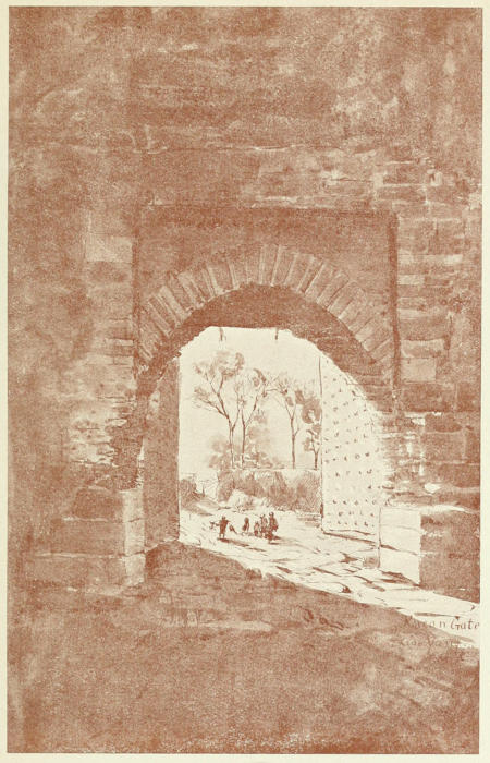 Another day I sketched the outside of that wonderful mausoleum, and day by day as we studied the monuments which time has defaced, but which even[193] in decay surpass all others in their potent effect upon the imagination, I dreamed of the genius which had left such an imperishable memory. Surely none of the other conquerors of the world was ever so strange a mixture as the great Mogul, compounded of ambition, lust of power, love of beauty, relentless cruelty, domestic affection, and zeal for “the Faith.”