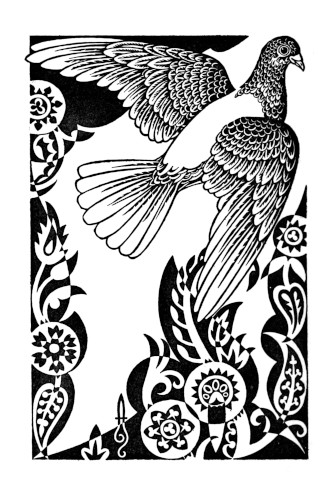 "But on seeing me, that film of terror left his eyes, and they burnt with a light of joy. He sat up in bed, took me in his hands and kissed my foot that had held the message that he had sent. Then he patted my right wing and said: 'Even in great distress, O thou constellation of divine feathers, thou hast borne thy owner with his message among friends and won glory for all pigeons and the whole Indian army.' Again he kissed my foot. His humility touched me and by example humbled me. I felt no more pride when I remembered how I fell in the trenches of an Indian brigade after that aeroplane had partly smashed my wing, for had I fallen in a German trench, then ... they would have seized the message on my leg, they would have surrounded the forest where Ghond lay hid with that wild dog—I shuddered to think of what they would have done! Alas! the dog, our true friend and saviour, where was he now?"