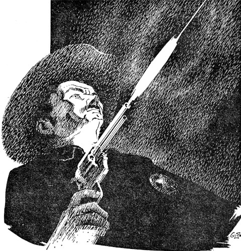 As his fingers flashed lightning fast to his gun, it suddenly occurred to him that Manny was right, that he and the Marshal were indissolubly linked through his own nervous system. He had no kin, no wife, no children. The Marshal was the only one on earth really tied to him. And in that instant, a terrible surge of fear came over him at the thought of killing his own.