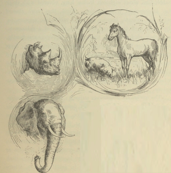 And is the earth now finished? That we cannot say; there may be many more astonishing changes yet in store for it. We are now apt to call it the “solid earth,” because those parts of it with which we are acquainted, the soil and the rocks, are the most solid things that we know; but in plain fact the earth may still be partly liquid, with the exception of a comparatively thin crust. The distance through this ball, our earth, is nearly eight thousand miles, and the surface, or crust, is perhaps nowhere over a hundred miles thick. Thus we might typify the world[1] by[Pg 3] a metal ball, having a thin shell of solid metal, and filled with melted metal. But as this crust, thin as it is in comparison, has for many thousand years proved thick enough and safe enough for a dwelling-place for men, I think we need not feel any anxiety because it is not thicker.