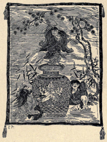 The fact of Nagasaki’s being only a port of call makes its curio market fluctuate in proportion to the number of merchantmen and men-of-war in port. When the harbor is full, no resident visits the curio-shops, whose prices always soar at such times. Tortoise-shell carving is a great industry of the place, but porcelain is still the specialty of this southern province, where the art was first introduced. Those wares of South Japan known anciently as Nabeshima and Hirado are the finest of Japanese porcelains, their blue and white beauty being simply perfect. The potters who brought the art from Korea and China settled in Satsuma and Hizen, and the kilns of Arita and Kagoshima are still firing. The Dutch carried the Arita ware to Europe under the name of Hizen. This porcelain is now more commonly termed Imari, while Deshima is another general name for the modern product, and Nabeshima and Hirado are the words used by connoisseurs in vaunting precious wares. This confusion of names misleads the traveller, who cannot at once discern that Hizen is the name of the province; Arita of the town where the potters live and the kilns are at work; Imari of the port from which it is shipped; Nabeshima the family name of that daimio of Hizen who brought the potters from Korea; and Hirado[365] of the daimio, whose factory at Mikawaji, near Arita, produced the exquisite pieces coveted by all of his fellow-daimios. Modern Imari ware is much too fascinating and tempting to the slender purse, but when one acquires a fondness for the exquisite porcelains the old Nabeshima made for themselves, learns the comb-like lines and the geometrical and floral marks on the underside that characterize them, and is aroused to the perception of the incomparable “seven boy” Hirado, his peace of mind is gone. Genuine old Hirado vases or plates, with the seven boys at play, or even five boys or three boys, are hardly to be bought to-day, and the countless commercial imitations of the old designs do not deceive even the amateur connoisseur. Old Satsuma is even rarer, and a purchaser needs to be more suspicious of it in Japan than in London. It is true that the air is full of tales of impoverished noblemen finally selling their treasures; of forgotten godowns being rediscovered; and of rich uncles leaving stores of Hirado and Satsuma to poor relations, whose very rice-box is empty. But the wise heed not the voice of the charmer. The credulity of the stranger and the tourist is not greater than the ignorance of residents who have been in the country for years without learning to beware of almost everything on which the Emperor’s chrysanthemum crest, the Tokugawa trefoil, or the Satsuma square and circle stand conspicuous.