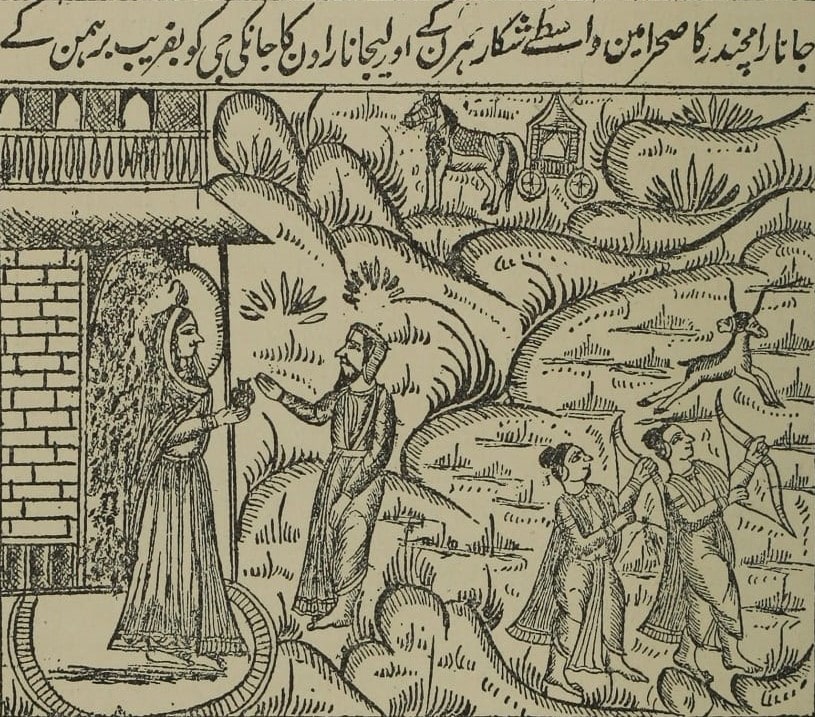 | The Abduction of Sita. (From an illustrated Urdu Version) |
