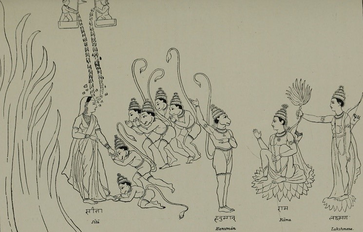 Once every year, at the great festival known as the Dasahra, the story of the famous Hindu epic, the “Ramayana,” is, throughout Northern India, recalled to popular memory, by a great out-door dramatic representation of the principal and crowning events in the life of the hero, Rama. The “Ramayana” is not merely a popular story, it is an inspired poem, every detail of which is, in the belief of the great majority of the Indian people, strictly true. Although composed at least nineteen centuries ago, it still lives enshrined in the hearts of the children of Aryavarta and is as familiar to them to-day as it has been to their ancestors for fifty generations. Pious pilgrims even now retrace, step by step, the wanderings, as well as the triumphal progress, of Rama, from his birth-place in Oudh to the distant island of Ceylon. Millions believe in the efficacy of his name alone to insure them safety and salvation. For these reasons the poem is of especial value and interest to anyone desirous of understanding the people of India; affording, as it does, an insight into the thoughts and feelings of the bard or bards who composed it and of a race of men who, through[16] two thousand eventful years, have not grown weary of it.