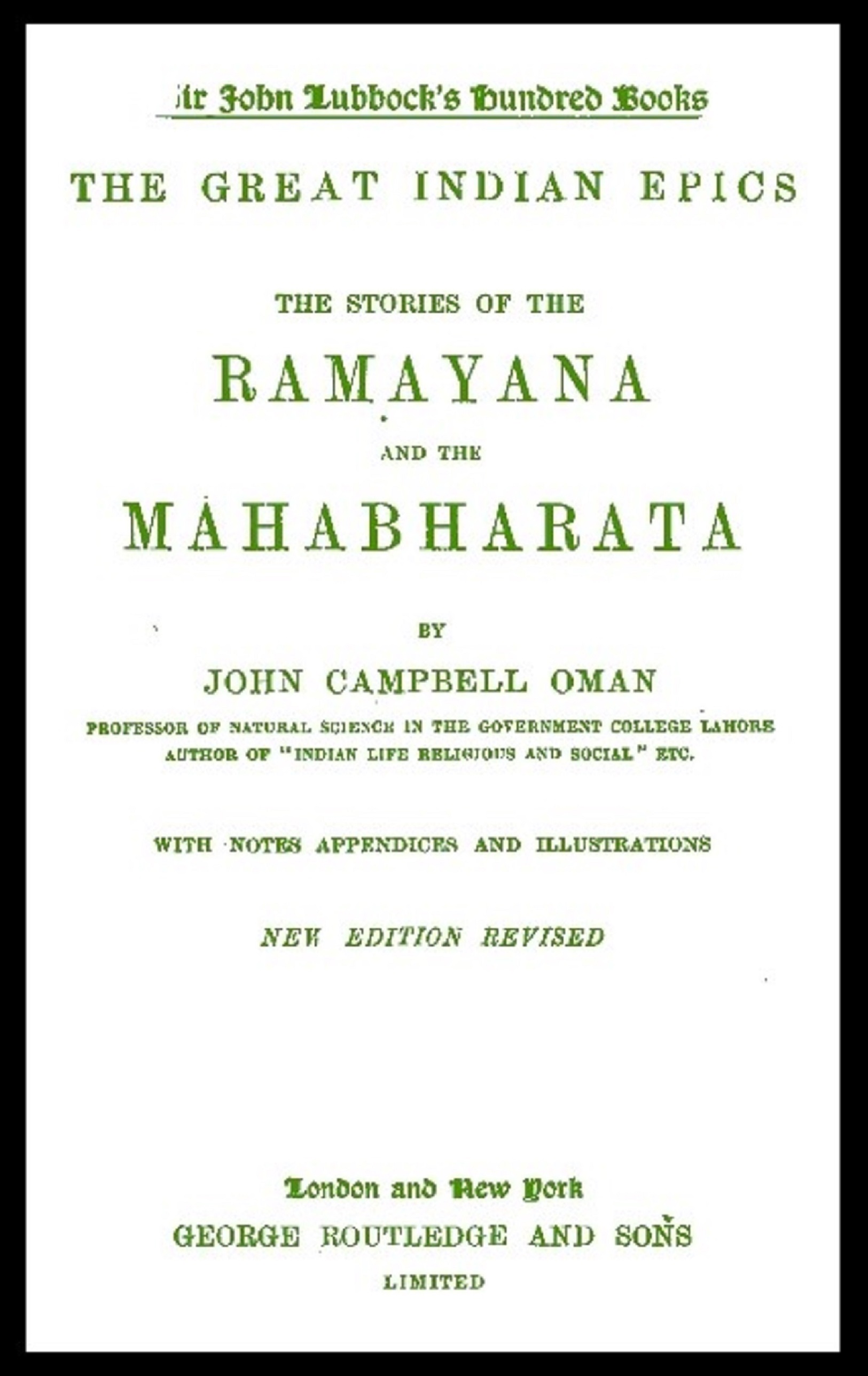 Such being the case, I make no apology for the appearance of this little volume, in which I have not only tried to reproduce faithfully, in a strictly limited space, the main incidents and more striking features of those gigantic and wonderful creations of the ancient bards of India—the “Ramayana” and “Mahabharata”—but also to direct attention to the abiding influence of those works upon the habits and conceptions of the modern Hindu.