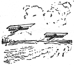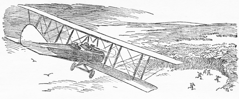 Hemingwood took off, circled the field, and then obeyed an impulse to give the crowd a parting thrill. He swooped down low over the field and waved a farewell. In the forefront of the crowd he saw Gail, and she was beckoning wildly. For a moment he stared. She was signaling him down!
