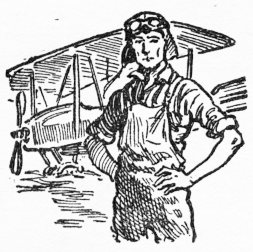 He landed, taxied the ship to the edge of the field, and turned it around. She appeared alongside the ’plane, her hair whipping in the propeller blast and her eyes glowing warmly. The astonished crowd looked on, wondering, as she put her lips close to his ear and said quickly: