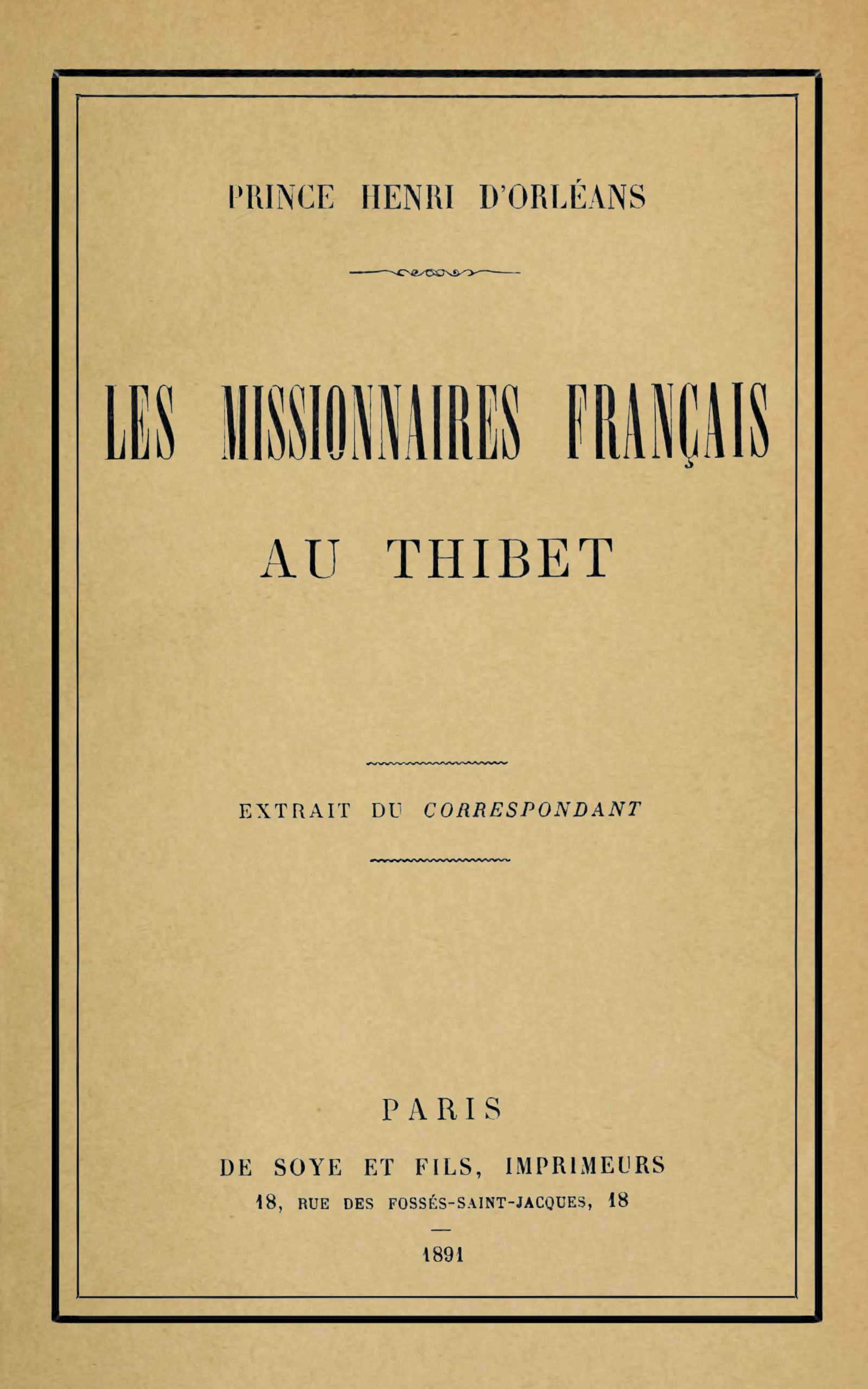 [7] Déjà en 1861 trois officiers anglais venus de la côte de Chine pour gagner les Indes par le Thibet ne s’avancèrent que jusqu’au Setchuen. A la nouvelle des troubles au Thibet, ils retournèrent sur leurs pas.