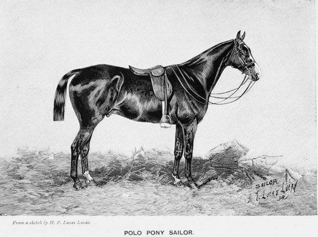 And while we make the English Turf pony which can carry weight our ideal, we acknowledge the difficulty of procuring it by seeking ready-made ponies in every corner of the horse-breeding world. Arabs and their near allies—Egyptian, Syrian and Barb ponies; Australian, Argentine, Canadian and Cossack ponies; ponies from the Tarbes district of France; ponies from Texas, Wyoming and Montana—all these have been imported and are played on English Polo grounds, and though not considered equal in speed, bottom, and courage to the English pony, the best of them when “made” are good enough to command high, if not extravagant, prices.