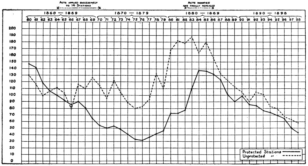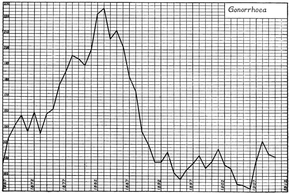 659. This is not included in Figure I. It is shown, however, on “Kurventafel A” along with all other foreign and American armies and navies in Josef Urbach’s Die Geschlechtskrankheiten und ihre Verhütung im k. und k. Heere, etc. (Wien und Leipzig, 1912) p. 13.