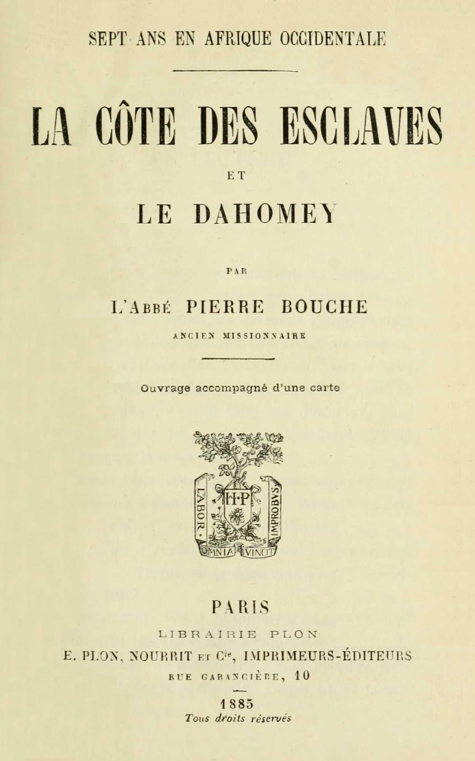 [119] M. Laffitte Irénée, ancien missionnaire au Dahomey, a publié deux ouvrages chez Mame : le Dahomey et le Pays des nègres.
