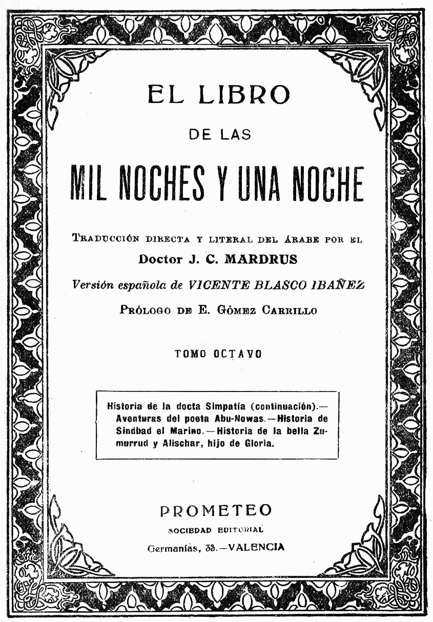 [2] El traductor introduce en este volumen y en los siguientes alguna modificación, justificada por ciertas divergencias entre los textos árabes, respecto al orden con que propúsose en un principio que se sucedieran los cuentos. Por tanto, se ha puesto aquí la Historia de Sindbad, aunque primitivamente no debía aparecer hasta más adelante.—J. C. M.