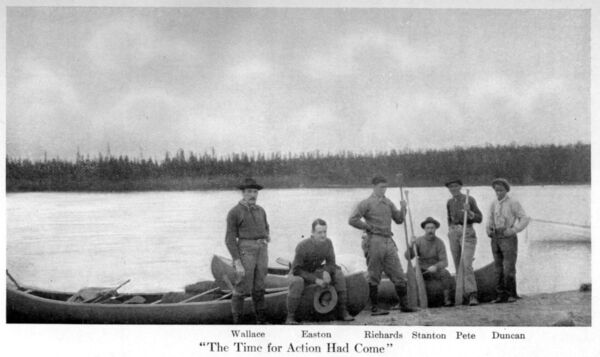 The river leaves the lake at its southeastern extremity, flowing between hills that rise almost straight from the waters edge, and is one long continuation of heavy rapids. After following the stream for two days we were obliged to retrace our steps to Seal Lake, thereafter keeping to the course pursued on the inland journey.